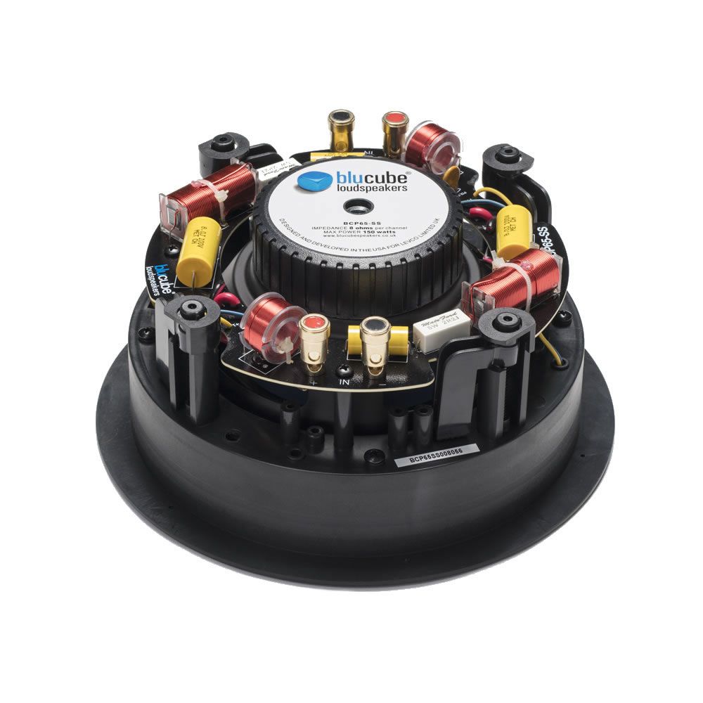 The BluCube BCP65-SS is the single stereo version of the mid-range BCP65 speakers. The twin voice coils and tweeters deliver a stereo signal out of a single unit enabling just one in-ceiling speaker to be used in a room. The BCP65-SS is ideal for use in smaller rooms such as bathrooms.